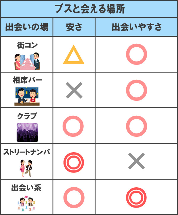 ブスが見つかりやすく、口説きやすい場ということになります。